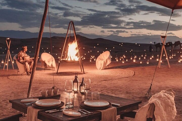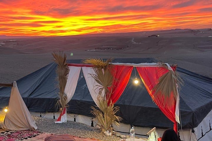 Looking for a unique night during your trip to Marrakech? With this experience in the Agafay Desert, you'll sleep in a traditional tent (haima) under the stars and enjoy a spectacular sunrise over the dunes. It will be magical!